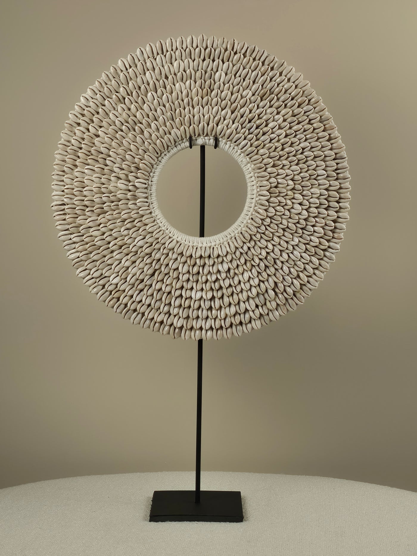 De Nova schelpen decoratie op standaard brengt een vleugje verfijnde coastal chic in je interieur. Met een diameter van 40cm en uitgevoerd in zachte crèmetinten, creëert deze handgemaakte decoratie een luxe, rustige uitstraling die perfect past in lichte, elegante interieurs.
